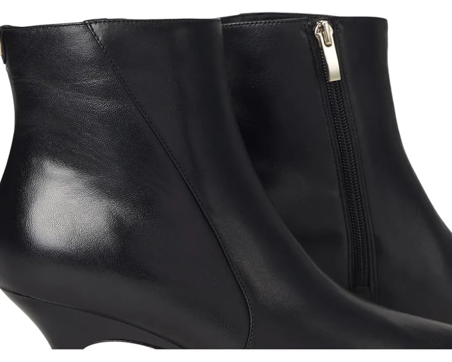 - Walk into modern sophistication wearing the Naturalizer® 27 Edit Patrese Ankle Bootie. Crafted with a premium leather upper and sleek pointed toe, this sculpted-heel dress bootie elevates your look from desk to dinner. The kitten heel adds just the right lift, while the side zipper ensures effortless wear. Experience unmatched ease with REZORB™ responsive cushioning that absorbs impact for sneaker-level comfort, and Contour+ Comfort technology that adapts to your unique shape for a flawless fit. The smooth PU lining and insole enhance breathability, while extra cushioning delivers luxurious softness with every step. Finished with a flexible synthetic rubber outsole designed for superior grip and shock absorption, this ankle-high beauty proves that true confidence starts from the ground up, because comfort has never looked this chic.
