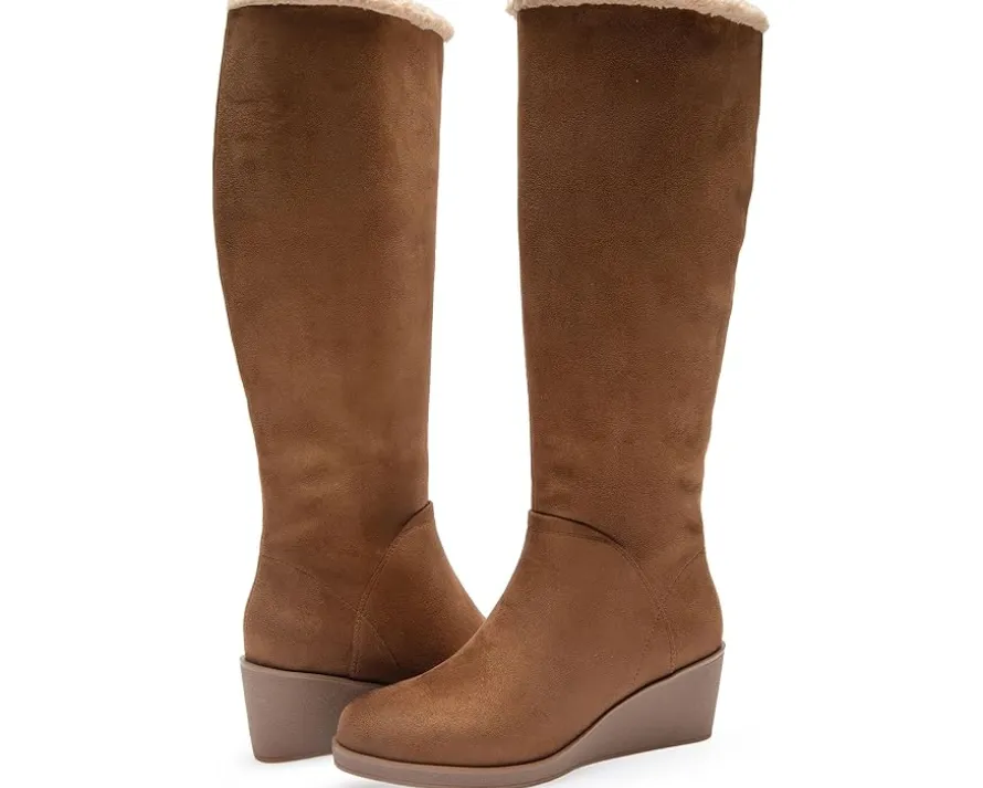 - Meet the Aerosoles® 2BINOCULAR Tall Wedge Boot, a faux shearling-lined crepe-textured footwear designed for cozy style. With a Diamond Flex™ outsole and memory foam insole, these boots offer superior comfort and support, making them perfect for chilly days when you want to look chic and stay warm.