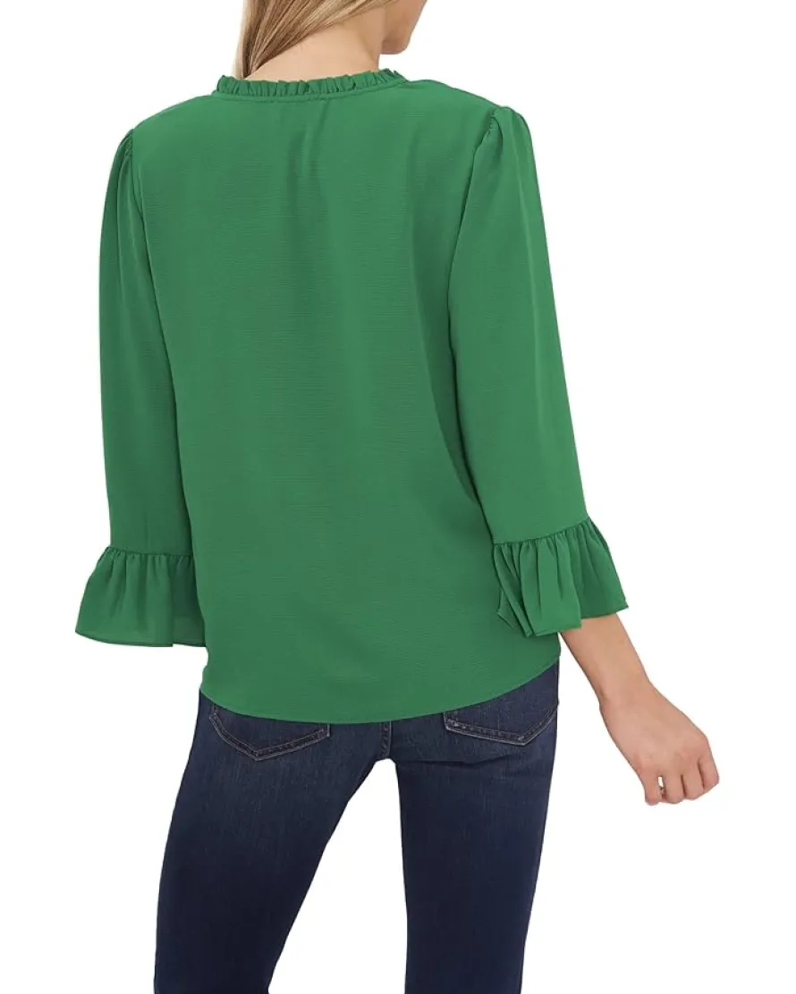 - Defined by sophistication and femininity, the CeCe™ 3/4 Ruffled V-Neck Top will make for a versatile addition to your wardrobe.