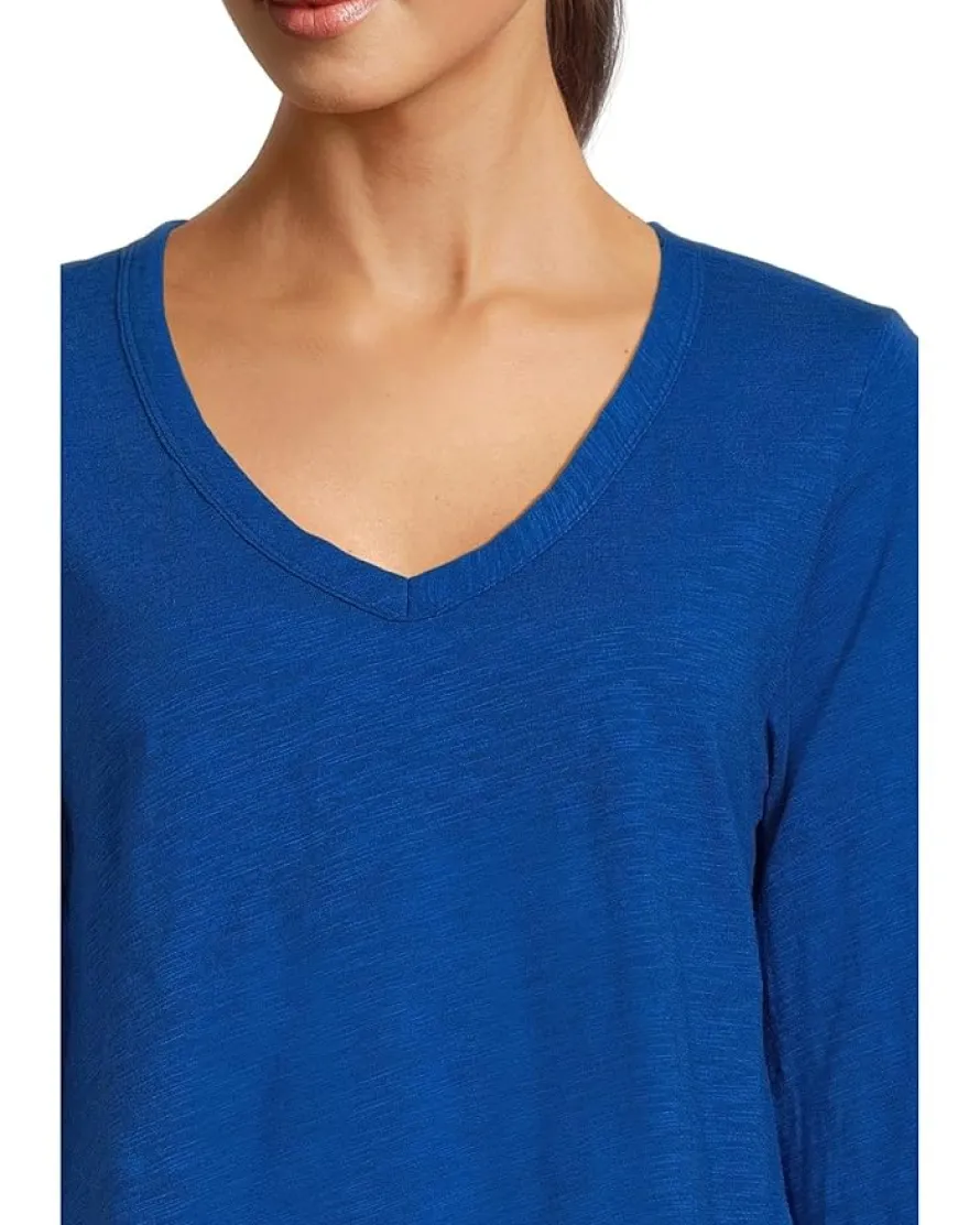 - Style Mod-o-doc™ 3/4 Sleeve V-Neck Tee with Curved Hem with your everyday jeans, skorts, or shorts for a statement look. The pull-on style top has a V-neckline, curved hem, and three-quarter sleeves. The casual tee has a regular fit.