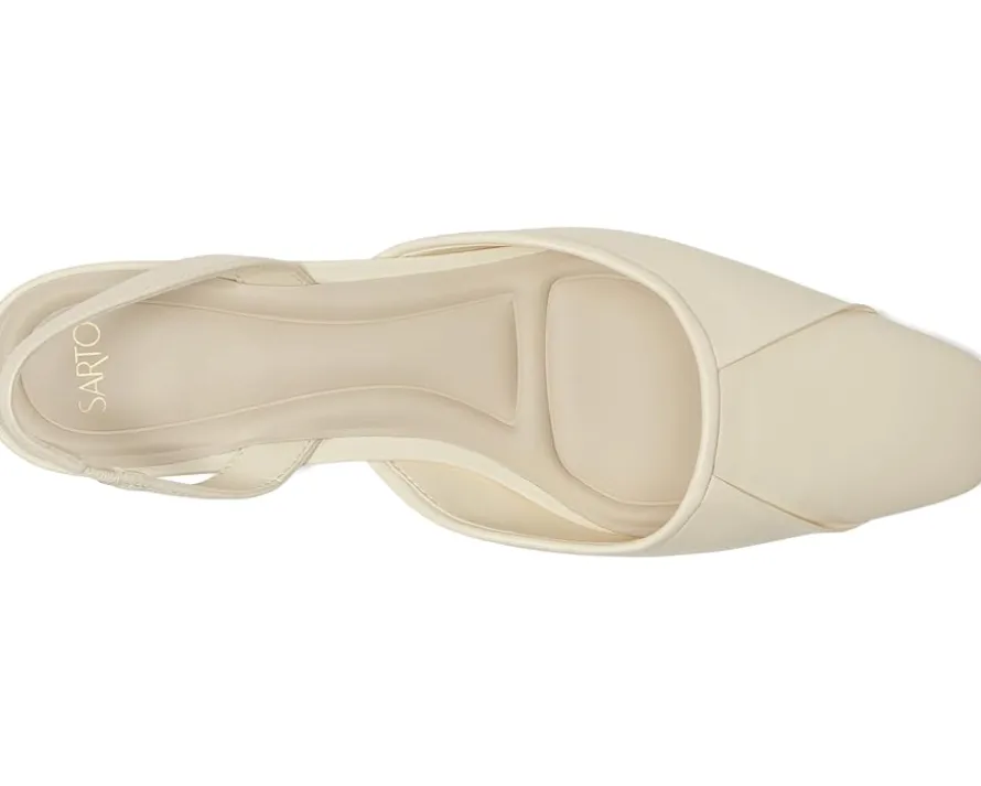 - The Franco Sarto® A-debbie Slingback Shoes are the epitome of beauty with their exquisite color palette and charming folded leather detail. These squared toe sandals are crafted with a leather upper, faux leather lining, and a leather insole. The slingback strap with stretch allows easy on/off and the block heel offers an elevated touch.