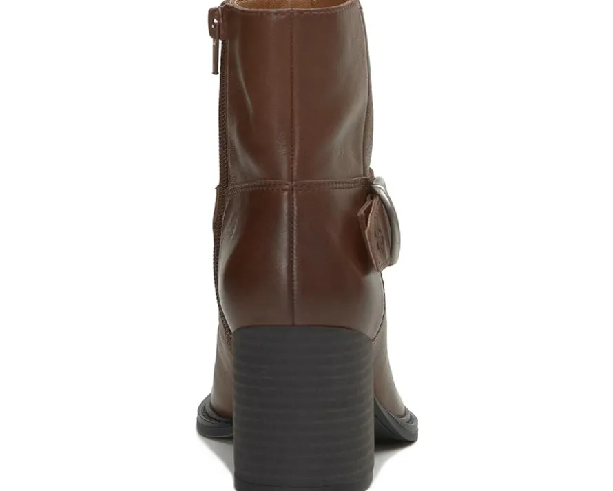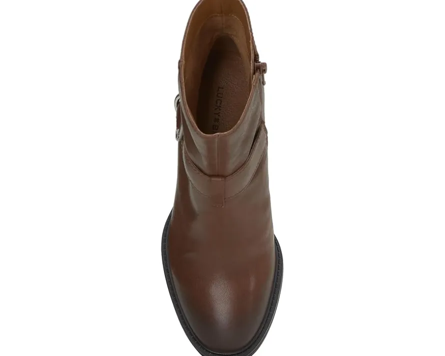 - End your hunt for an authentic pair of boots that are fashionable and equally comfortable with the Lucky Brand® Achelle Boots. The boots have a versatile design and are made with a leather upper, a textile lining, and a padded synthetic footbed. The decorative buckled ankle strap enhances the style of these boots while the zippered side closure offers you an easy entry.