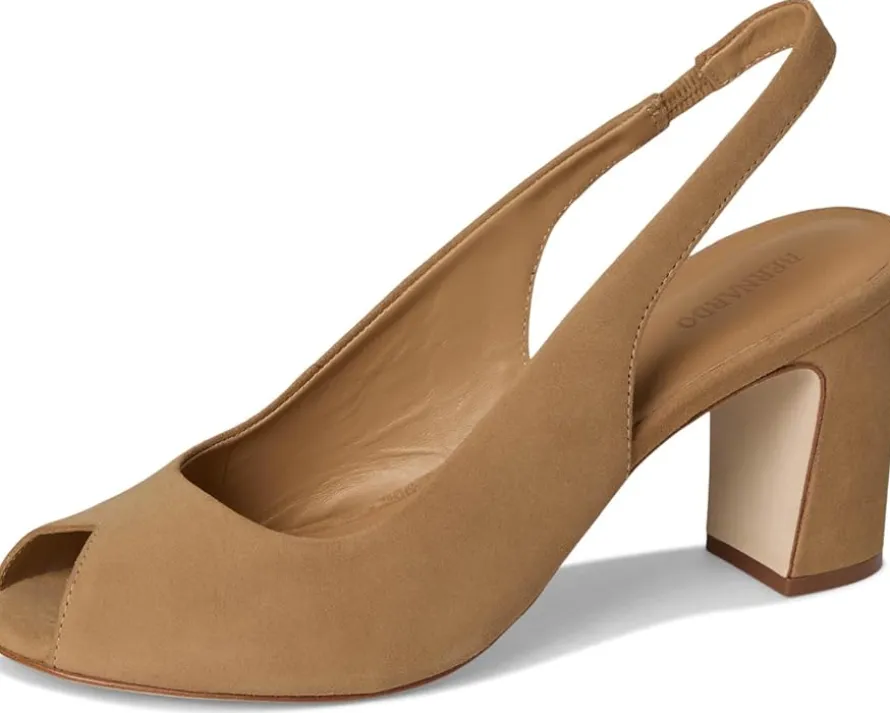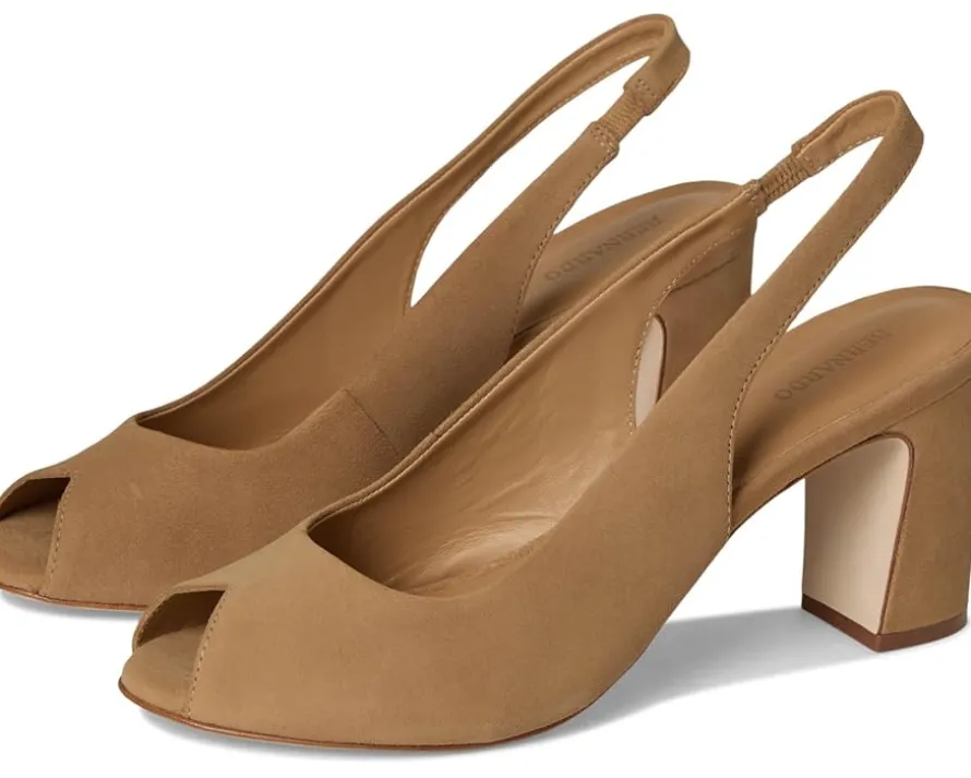 - Crafted for the city beat: Bernardo® Adell. From meetings to soirées, these slingback peep-toe heels are your go-to for everyday elegance. Crafted with a luxe leather upper, lining, insole, and outsole, Adell delivers all-day comfort without compromising on polish. The soft patent leather or supple suede adds a touch of texture, while the easy pull-on design and secure slingback strap keep things effortlessly refined. A modest block heel elevates your stride, perfect for power moves at the office and graceful glides at dinner.