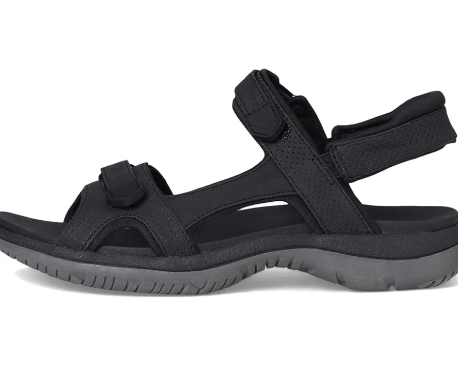 - The Dr. Scholl’s® Adelyn sandals are strappy sandals with stitch detailing, extra heel cushion, and a synthetic rubber outsole. These sporty sandals are made of a low-chemical faux leather and Spenco fabric upper that is partially made from recycled plastic bottles. The straps with hook-and-loop closure and stretch gore ensure easy on/off. Their lightweight, flexible construction with flex grooves moves with you. These flat sandals are designed with a polyurethane lining that is partially made from recycled plastic bottles while the foam insole features Insole technology with anatomical cushioning, comfort, & arch support. As beach shoes, travel shoes, or walking shoes, you will love sporting these sandals everywhere.