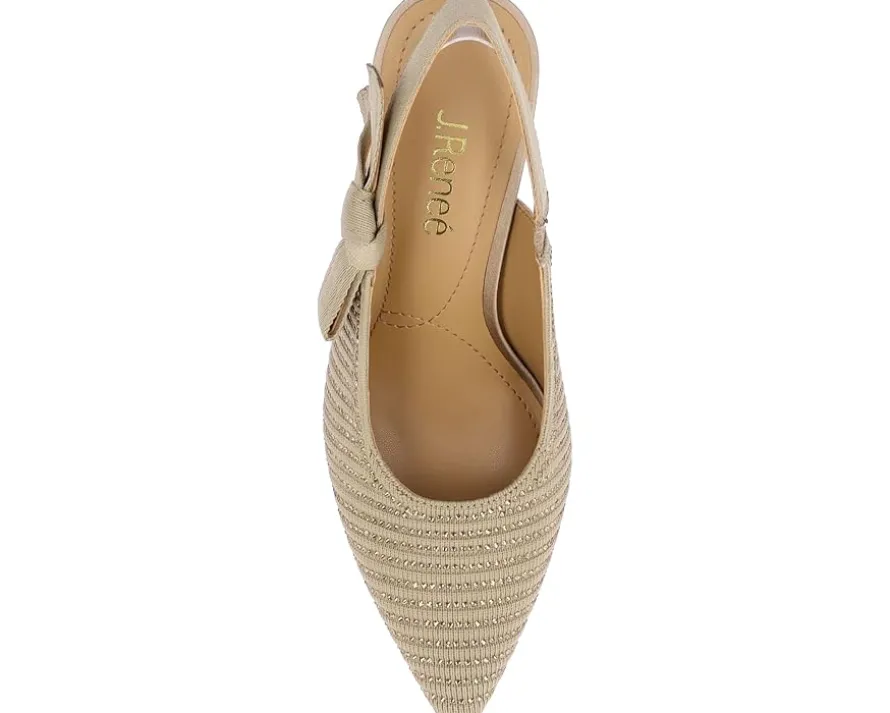 - Add a touch of class to your style statement wearing the J. Renee® Adilene pump. Made of polyurethane upper with embellished rhinestone, the pump features a memory foam latex insole and polyurethane lining. A elastic slingback with pointed toe and pull-on style ensures right fit. It has stiletto heel for year-round outings.