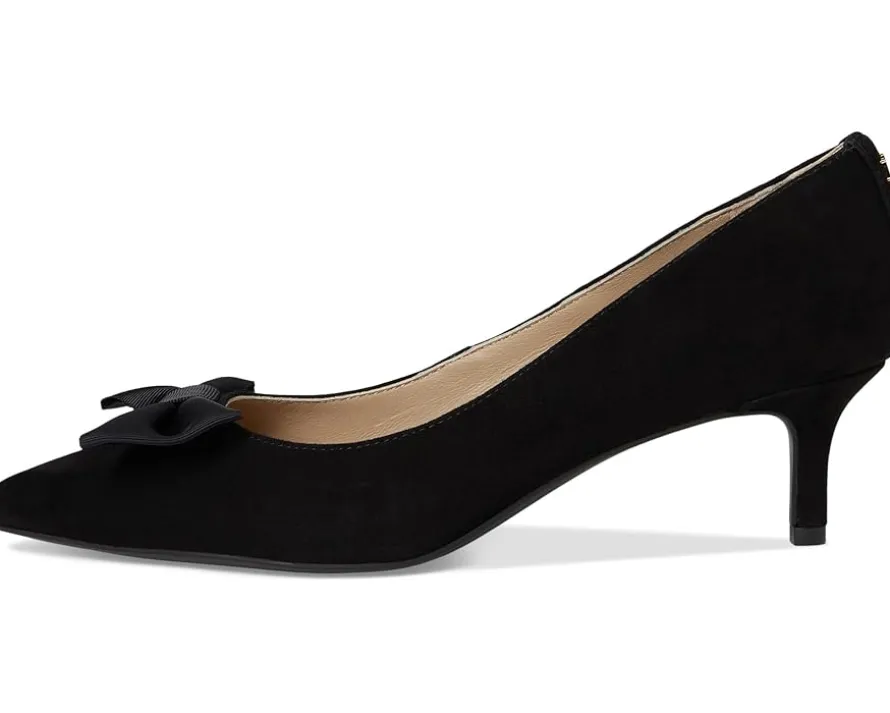 - Lauren Ralph Lauren® Adrienne Bow-Trim Suede Pumps bring sophistication and charm to every stride. Crafted from velvety suede, these pumps feature an ultrafeminine grosgrain bow at the vamp, instantly elevating your look with a touch of romance. The sleek leather upper and lining exude refinement, while the foam-padded insole provides all-day comfort you’ll love. Designed with a graceful kitten heel, these slip-on pumps offer just the right lift for effortless style without sacrificing ease. The durable leather outsole ensures stability and lasting wear, making them a versatile addition to your wardrobe. Finished with the signature “LRL” logo at the back, this pair embodies understated luxury with every detail.