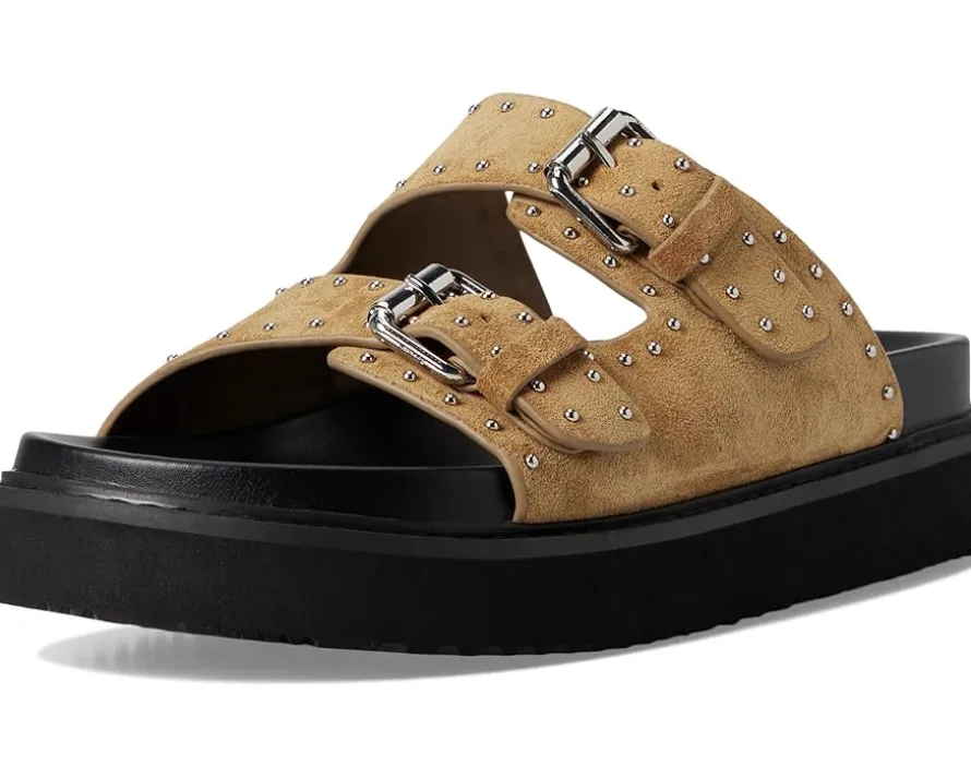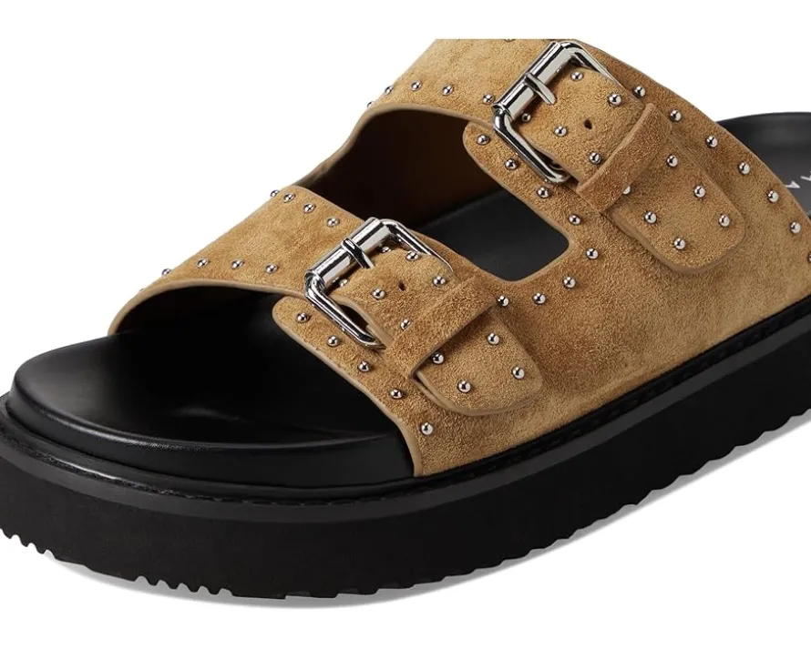 - Stay ahead of the trend wearing the Marc Fisher LTD™ Agusta sandals, where casual meets luxe. Crafted with a chic suede upper and cushioned EVA insole, these platform slip-ons redefine comfort and sophistication. The duo buckled straps add a touch of edgy flair, while the lightweight synthetic rubber outsole ensures all-day ease. Designed for effortless wear, the Agusta is your go-to for everything from sunny strolls to stylish soirées. With a sleek silhouette and premium materials, these sandals promise a statement-worthy look you’ll reach for on repeat.