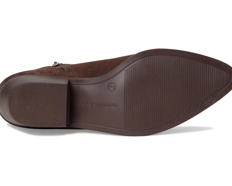 - The Ailein boot from Lucky Brand® is an effortless option for any fall look. This bootie features a pointed toe design, a stack heel, and a zippered side closure. Designed with a sleek leather upper and polyurethane lining, this bootie blends comfort and style with ease.