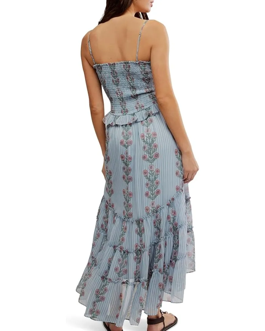 - So stunning with vintage-inspired charm, this classic midi dress will turn heads with every wear. Easy with beachy sandals or sleek with platforms, this style has endless ways to wear. Featuring shirred bodice, dropped-waist seam, tiered skirt design, vintage-inspired floral block print throughout, and removable straps.