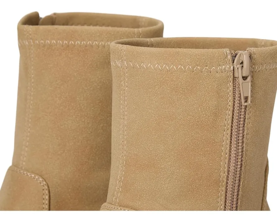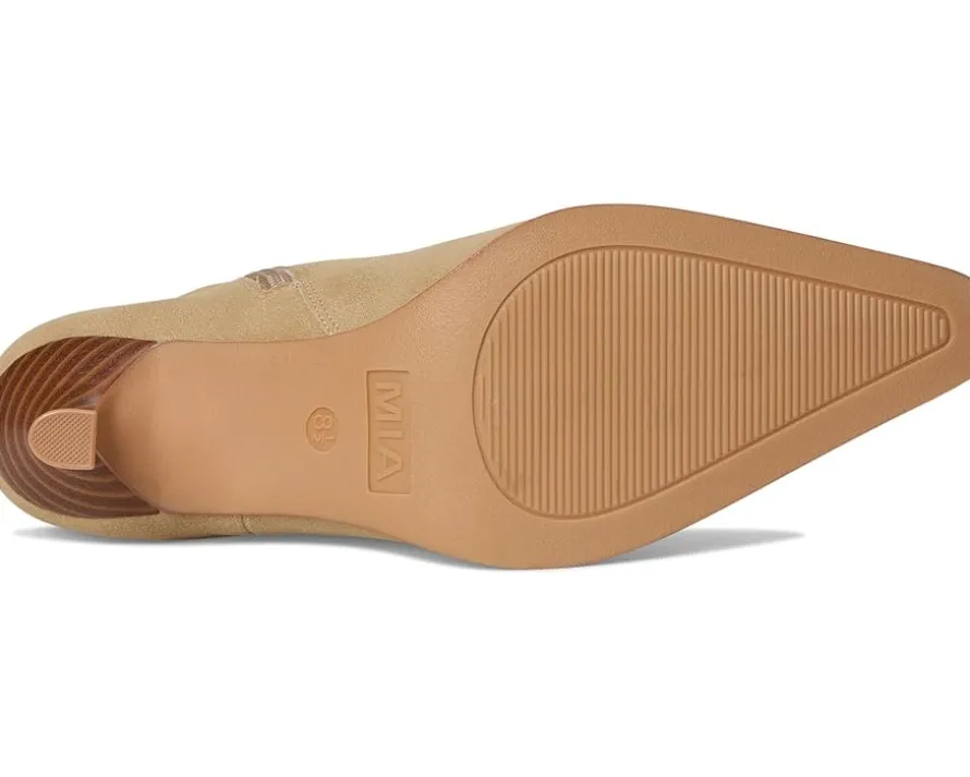 - The MIA™ Aletta boots are your new go-to boots, combining sleek design with everyday comfort. Crafted from faux suede in a versatile sand color, these ankle-high boots offer a sustainable yet stylish option for your wardrobe. They are designed with a foam insole and faux leather lining. The zippered side closure ensures easy on and off. With stiletto heels, these heeled boots offer the perfect height to strut without compromising comfort.