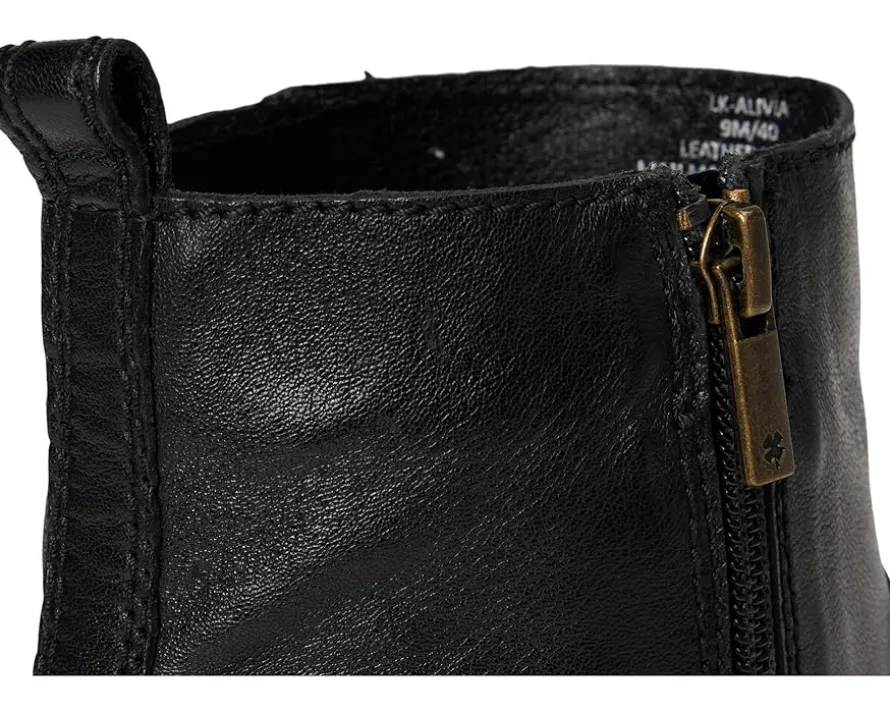 - The Lucky Brand® Alivia Leather Boots redefine modern versatility, blending casual comfort with dressy sophistication. Crafted from super soft leather, these ankle-high beauties feature a sleek almond toe and a convenient zippered closure, making them effortless to slip on and go. Inside, a cushioned foam insole paired with PU lining ensures all-day comfort, while the durable rubber outsole offers reliable traction for every step. The subtle stack heel adds just the right lift, perfect for transitioning from daytime errands to a night out on the town.