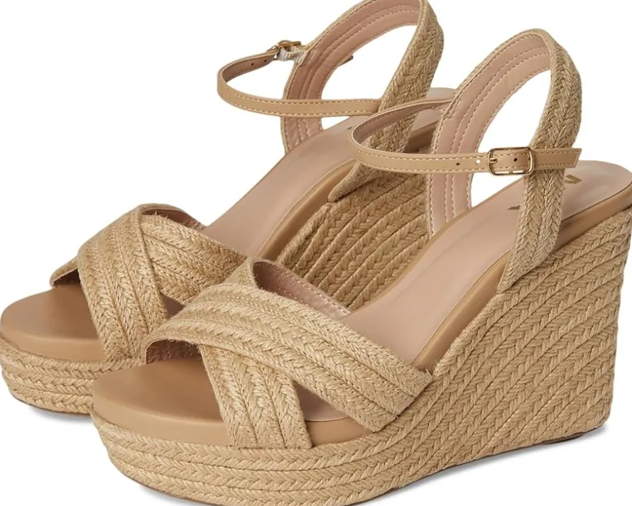 - Stride with uncompromised flair and ultimate comfort wearing the MIA™ Alouette Sandals. The espadrille footwear features intricately braided plastic upper with backstrap and buckled ankle strap closure.