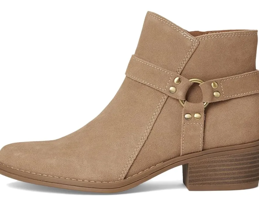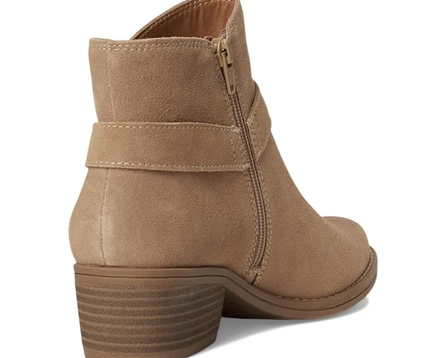 - Strut in the modern western style wearing the White Mountain® Altossa. This bootie is ankle length with a block heel, and functional inside zipper for easy closure. The harness detailing provides a modern look on a western style bootie. It is crafted from leather upper, fabric lining, and foam insole.