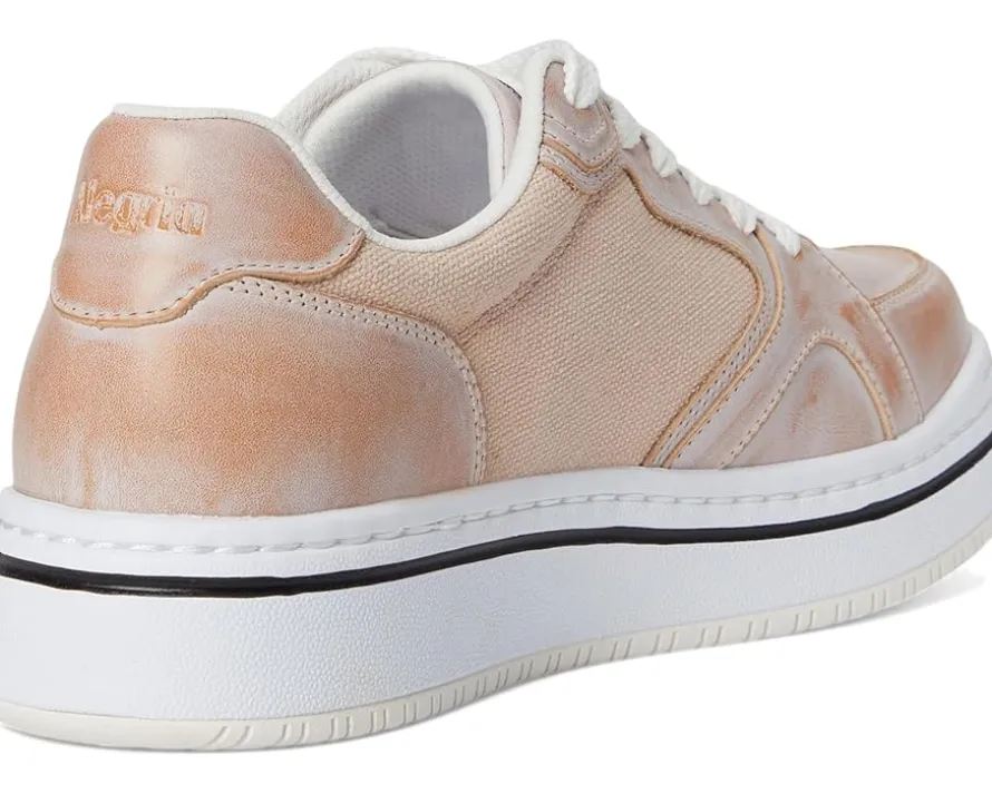 - The Alegria® Alyster shoes are your ticket to style and excitement. These lace-up sneakers feature a stain-resistant leather and washed canvas upper that offers superior comfort and breathability. The lightweight EVA slip-resistant outsole and removable EVA footbed keep the adventure going while keeping your feet supported. These sneaker shoes come with polyester lining that keeps your feet cool and comfortable. Perfect to pair with different outfits and styles, these shoes serve as an ideal footwear choice.