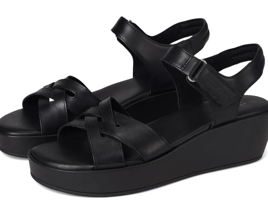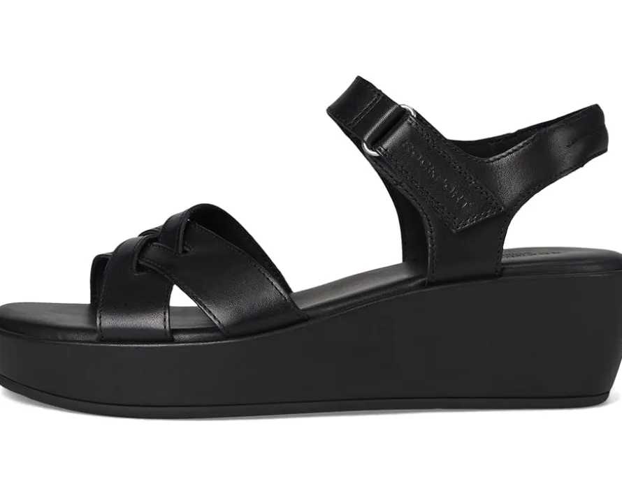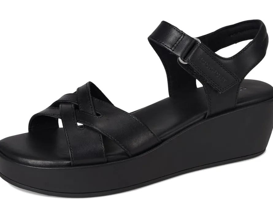 - A staple for any wardrobe, the Rockport® Amira wedge sandals combine style and comfort. It offers crisscross straps, an open toe, and a cushioned insole, to keep you on your feet. Featuring truTECH® technology for lightweight shock absorption. The sandals feature leather upper, polyester lining, and foam footbed.