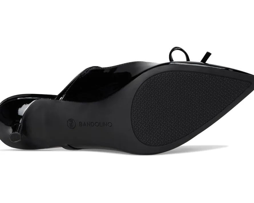 - The Bandolino® Amoss Dress Mules are the must have of the season! Featuring a slip-on silhouette, bow detailing on the patent faux leather upper, and a pointy toe, these will be your go to mules of the season. The man-made lining and foam footbed ensures comfort with every step and the kitten heel revamps the look.