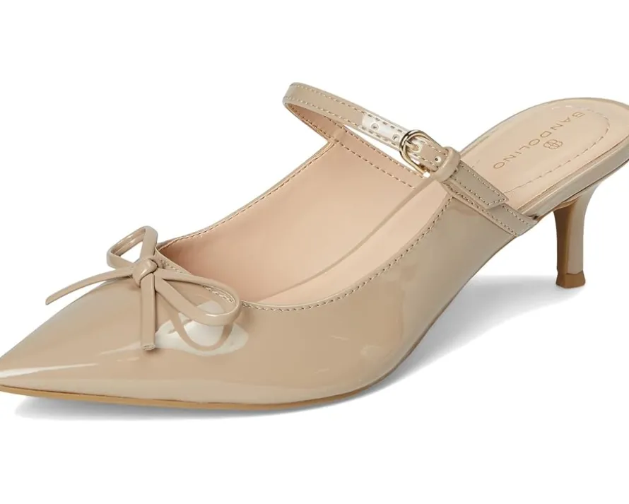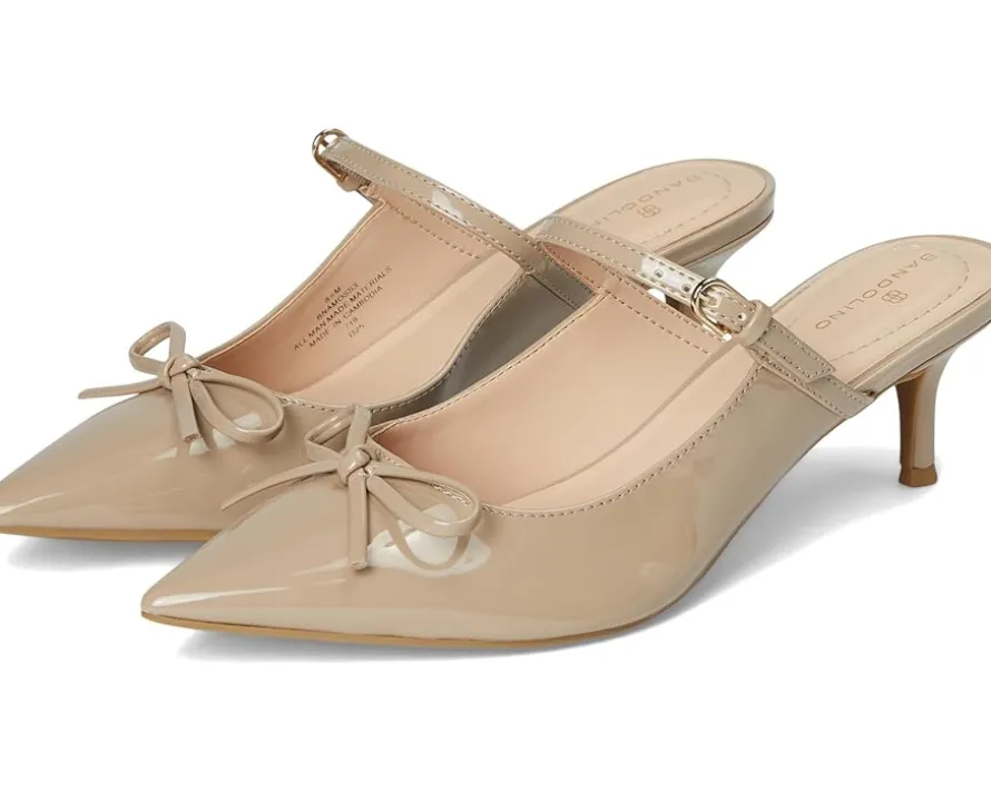 - The Bandolino® Amoss Dress Mules are the must have of the season! Featuring a slip-on silhouette, bow detailing on the patent faux leather upper, and a pointy toe, these will be your go to mules of the season. The man-made lining and foam footbed ensures comfort with every step and the kitten heel revamps the look.