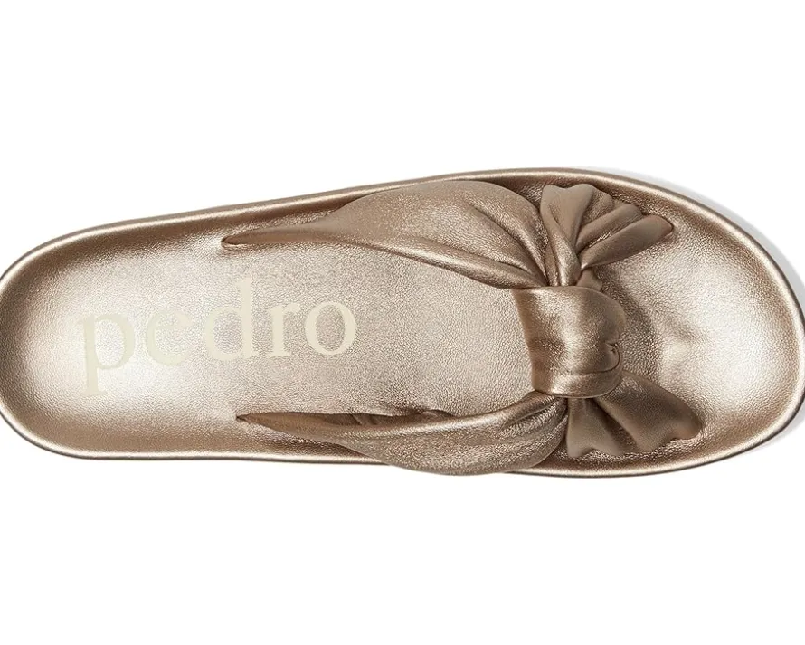 - The Pedro Garcia™ Anabela is a knotted contour slide in laminated lambskin leather. This slip-on footwear features a round open toe silhouette and platform heel for added lift.
