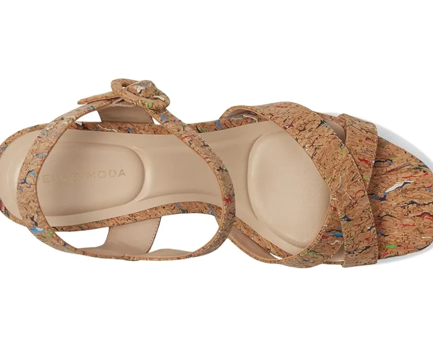 - Multi colored cork upper straps and platform and heel for a fun summer look. Adjustable ankle strap for fit. Pair with your favorite denim or skirt for an effortlessly chic look.