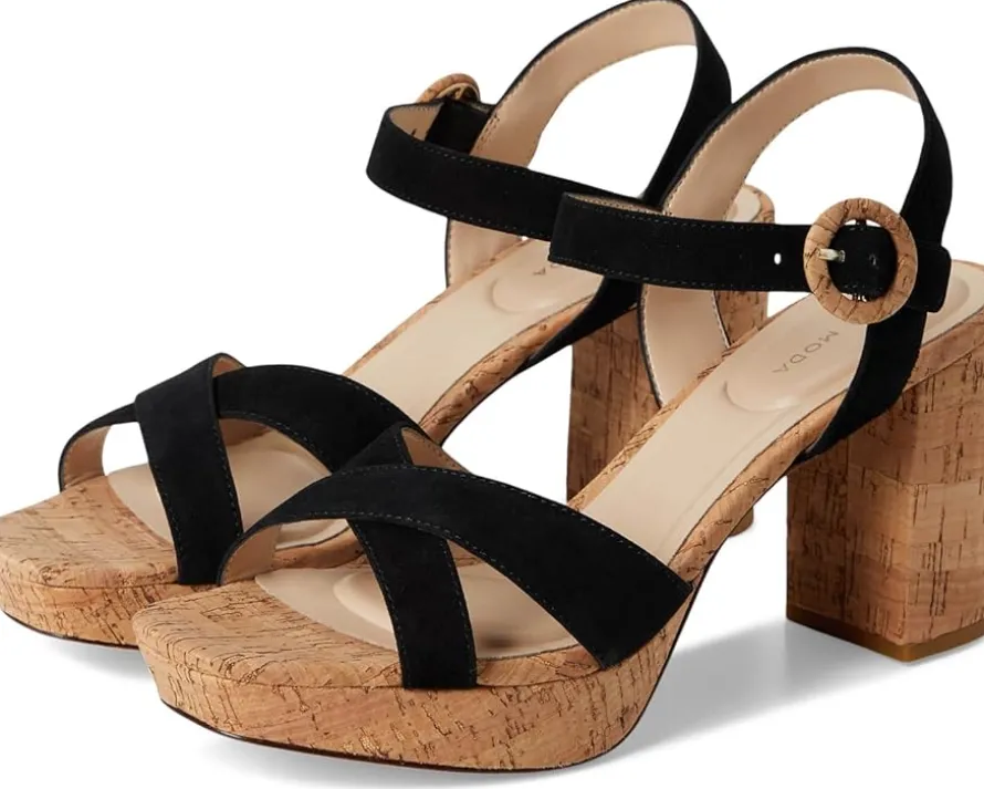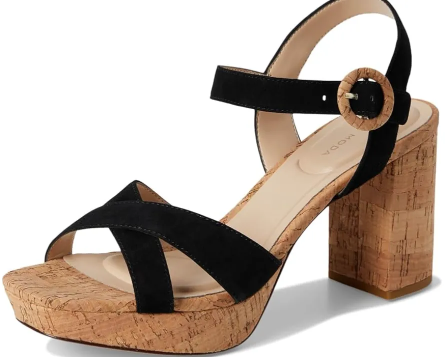 - Multi colored cork upper straps and platform and heel for a fun summer look. Adjustable ankle strap for fit. Pair with your favorite denim or skirt for an effortlessly chic look.