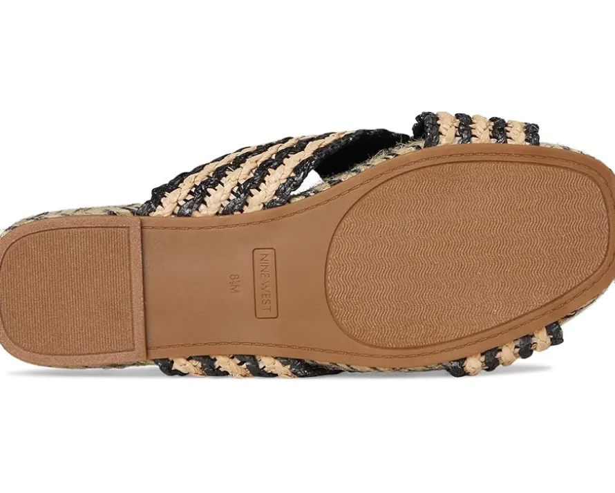 - Step up your shoe game in the Nine West® Animay casual sandals. These slip-on sandals are made of a polyurethane upper, cushioned insole, and cotton lining. They feature a slip-on silhouette, criss-cross straps, and a round-shaped toe. These slide sandals are anything but boring.