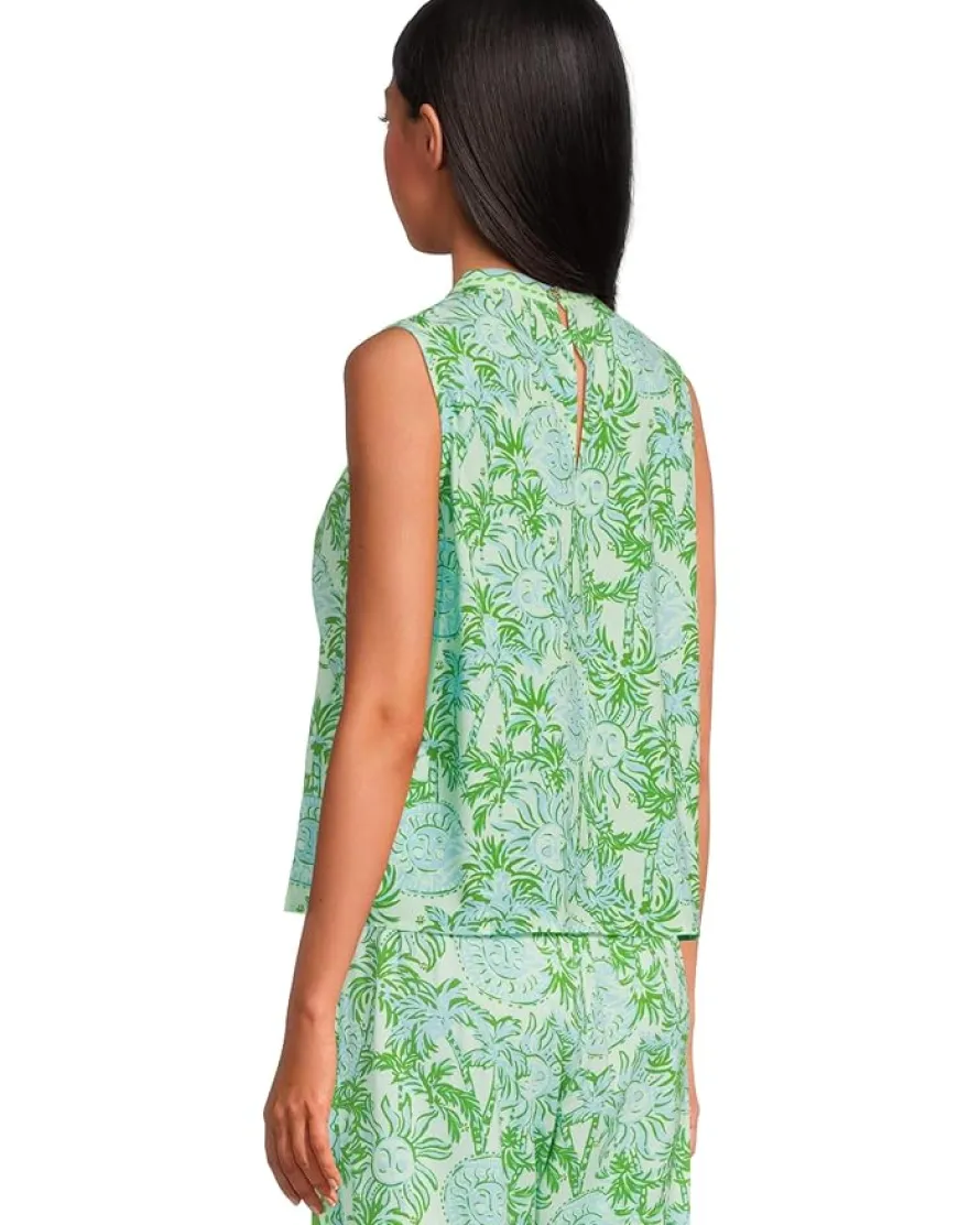 - Channel sunny vibes and statement style in the Lilly Pulitzer® Anya Top. Designed with a flattering high neck and a straight-fit silhouette, this sleeveless stunner brings a fresh, polished touch to warm-weather dressing. The vibrant floral print radiates bold femininity, while the keyhole detail at the back of the neck adds a subtle, flirty twist. Crafted for easy wear with a pull-over design, it’s perfect for brunch dates, beachside strolls, or dressing up denim.