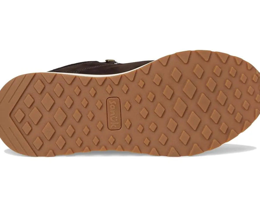 - Take every step with improved comfort and style wearing the Sanuk® Apres Me Shoes. Tropically applied water-repellent treatment combines with this nubuck mid-cut construction, along with faux shearling tongue, toe, and heel protection. Gusseted tongue helps to keep the elements out. High pile fleece lining keeps the coziness in, while the athletic midsole paired with durable rubber outsole allows for easy outdoor transition.