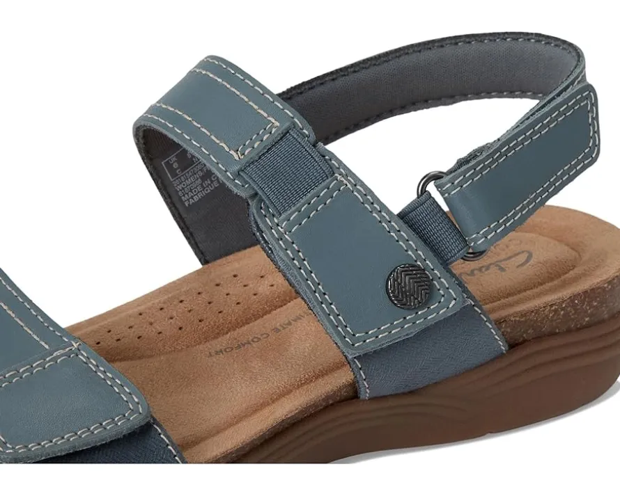 - Prepped for breezy warm-weather wear, the Clarks™ April Clover sandals boast a soft, strappy leather upper for a classic look and feel. Their Clarks Ultimate Comfort PU foam footbed keeps every stride light and free, while a grippy rubber outsole brings extra stability to this ultra-versatile pair. The adjustable strap ensures a secure, custom fit. These leather sandals are made of a cork insole and cotton blend lining, making them comfortable for all-day wear.