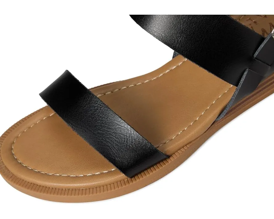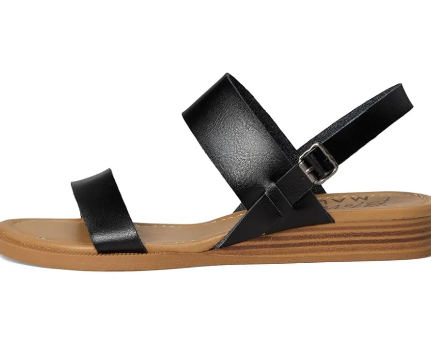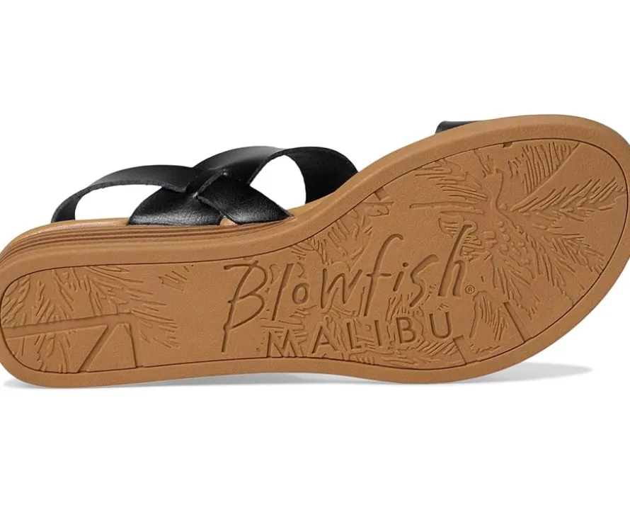 - Make the Blowfish® Malibu Arcadia slip-on sandal yours! It features a faux leather upper with buckle adjustable heel strap for a comfortable fit and a low wedge heel for just a hint of height.