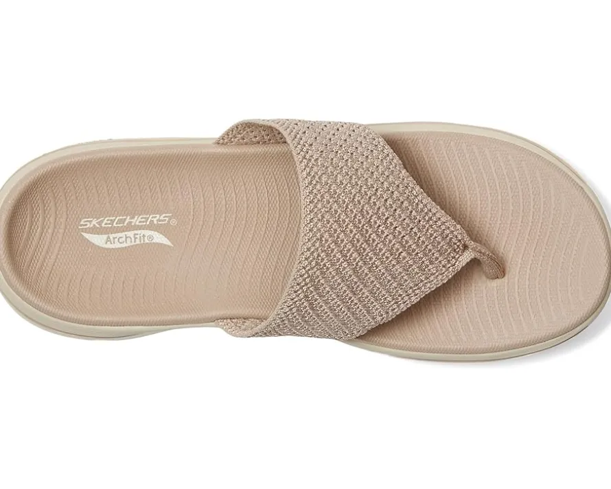- Keep your feet happy in warmer weather with the SKECHERS® Performance Arch Fit 2.0 Quick-Dry 3-Pt sandals. These thong sandals feature a quick-dry finished knit mesh upper, lightweight Ultra Go cushioning, and high-rebound comfort pillar technology. The patented Skechers Arch Fit Insole System with podiatrist-certified arch support provides all-day comfort and support. Machine washable and durable, these slip-on sandals are APMA-accepted.