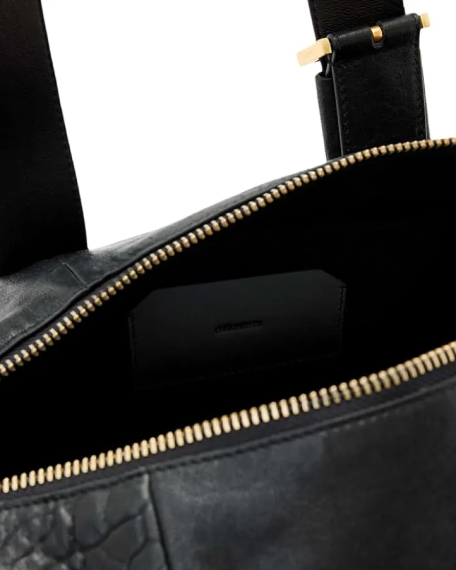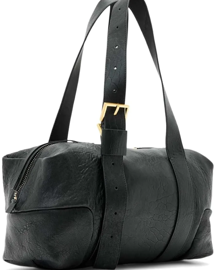 - Complement your chic while keeping your essentials organized in the AllSaints™ Ares Grain Shoulder Bag. Crafted from leather, this duffle style bag offers a top zipper closure with interior pocket, grab handles, and adjustable shoulder straps.