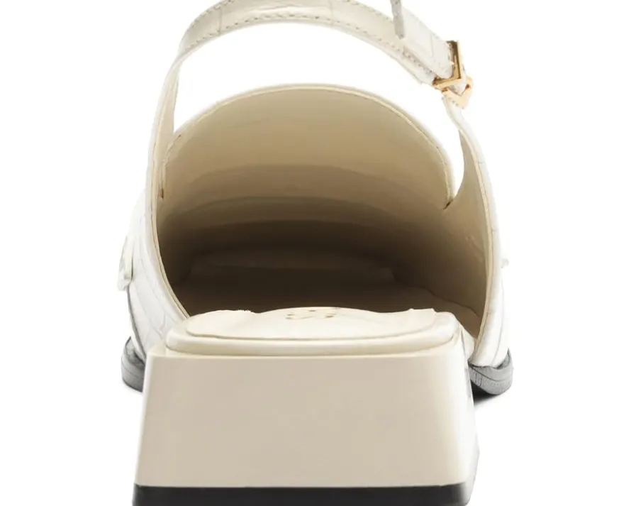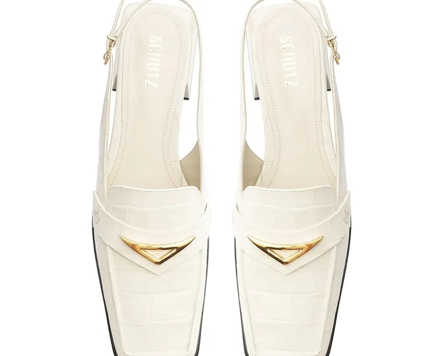 - From casual styles to work outfits, the Schutz® Arizona Sling Block sandals work for different occasions. The EVA insole and synthetic lining of these sandals offer all-day comfort. These heeled sandals are crafted with a croco printed leather upper with an adjustable slingback strap. A perfect choice to style up your outfits, these leather sandals make a great addition to your footwear collection.