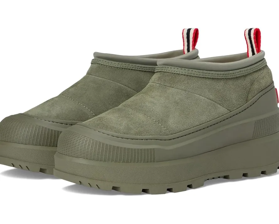 - The Hunter® Askern mules are prepared for all weather ahead. Featuring waterproof suede, faux-shearling lining and slip-on silhouette. The perfect well-rounded addition to your wardrobe.