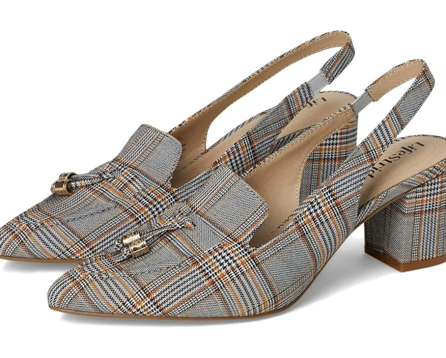 - Tailored and timeless, this now-trending slingback pump with a tassel detail looks sophisticated with every outfit. Microfiber or fabric upper with a softly pointed toe, slingback strap with built-in stretch, and ornamental tassel detail.