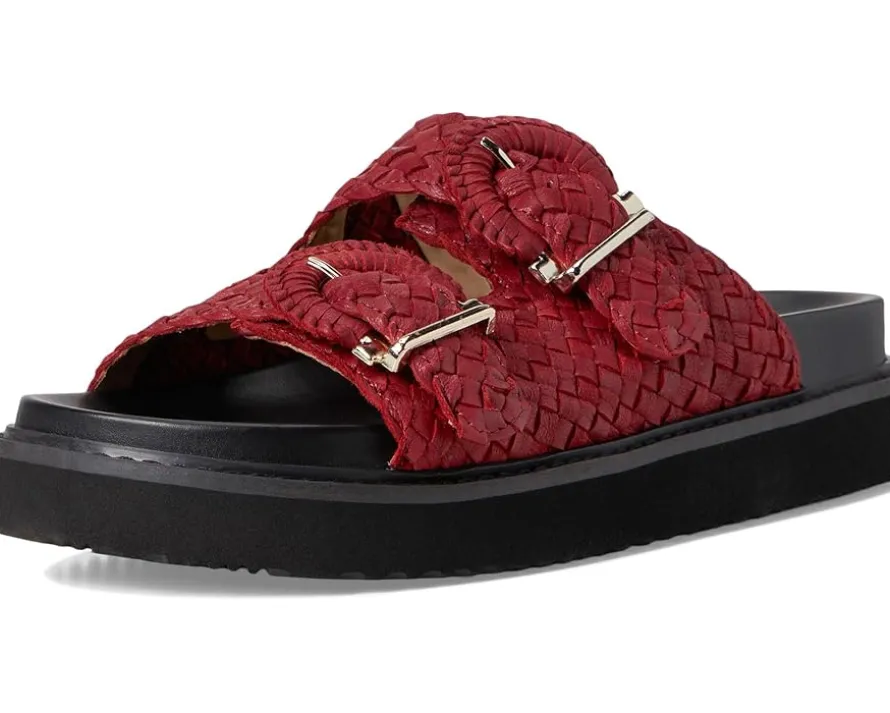 - Add glam to your casual look wearing Marc Fisher LTD™ Auggie Sandals. These feature a woven detailing, slip-on design, and two buckled straps along with an open round toe shape. The sandals are crafted with a leather upper and man made lining.