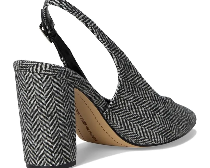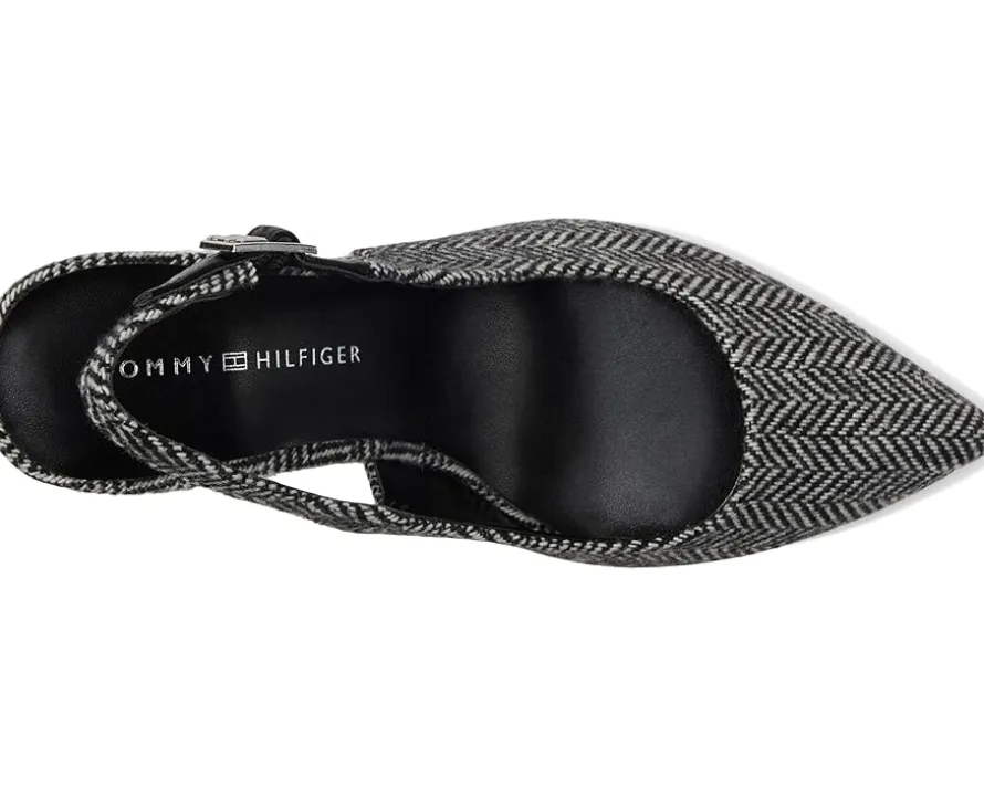 - This gorgeous Tommy Hilfiger® Azalee pointy toe slingback is on a wearable block heel to complement any outfit, either for work or play. It is the must-have dress style for the season! The logo is subtly located on the buckle for the perfect attention to detail. Must have for your closet!