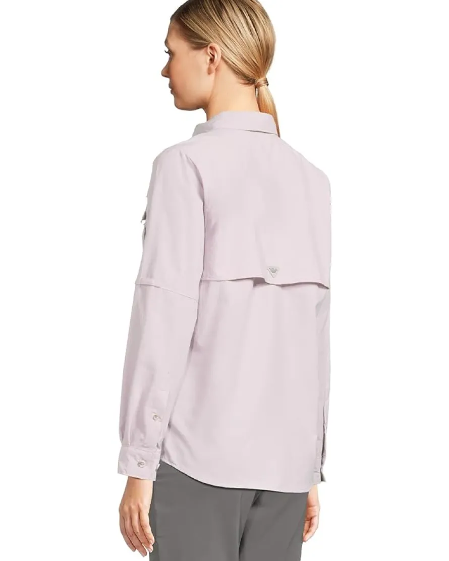 - Embrace the class wearing the Columbia® Bahama™ II Long Sleeve. Made from Omni-Shade Broad Spectrum UPF 50 sun protection fabric which is quick-drying. Featuring collared neckline, button front closure, long, rolled-up sleeves with button cuffs, two chest pockets, and curved hem.