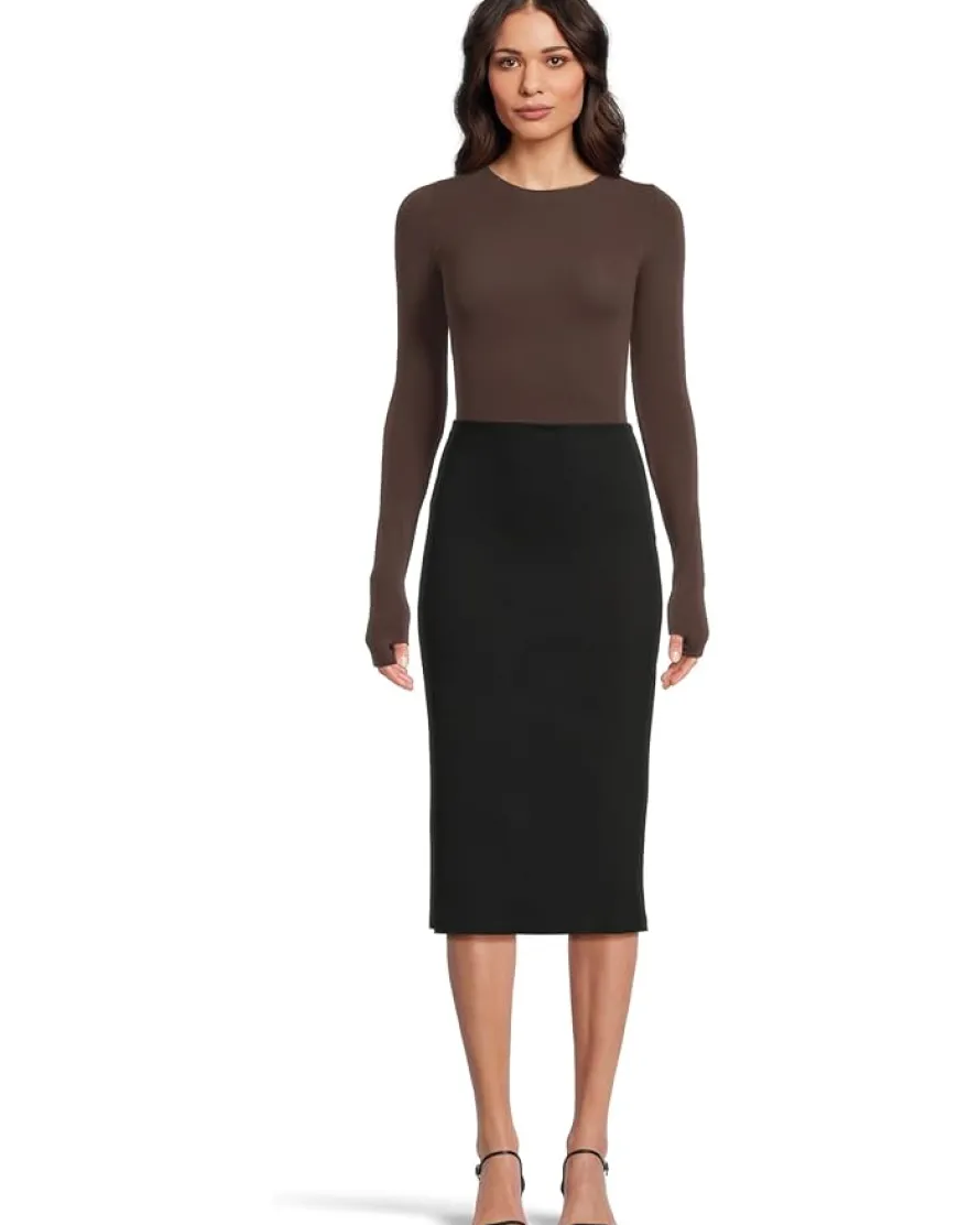 - The Commando™ Ballet Long Sleeve Bodysuit w/ Thumbholes is where timeless elegance meets modern edge, designed to move with you and elevate every outfit. With its classic crew neckline and streamlined silhouette, this bodysuit is the ultimate layering piece or standalone stunner. Long sleeves with thumbholes add a polished finish, perfect for styling with stacked jewelry or keeping it minimal for a refined look. Crafted from luxuriously soft, high-stretch European microfiber, it offers all-day comfort and a second-skin fit that smooths seamlessly under anything. The pull-on design makes it effortlessly easy, while the sleek base layer transforms into a statement piece with just the right touch of drama.