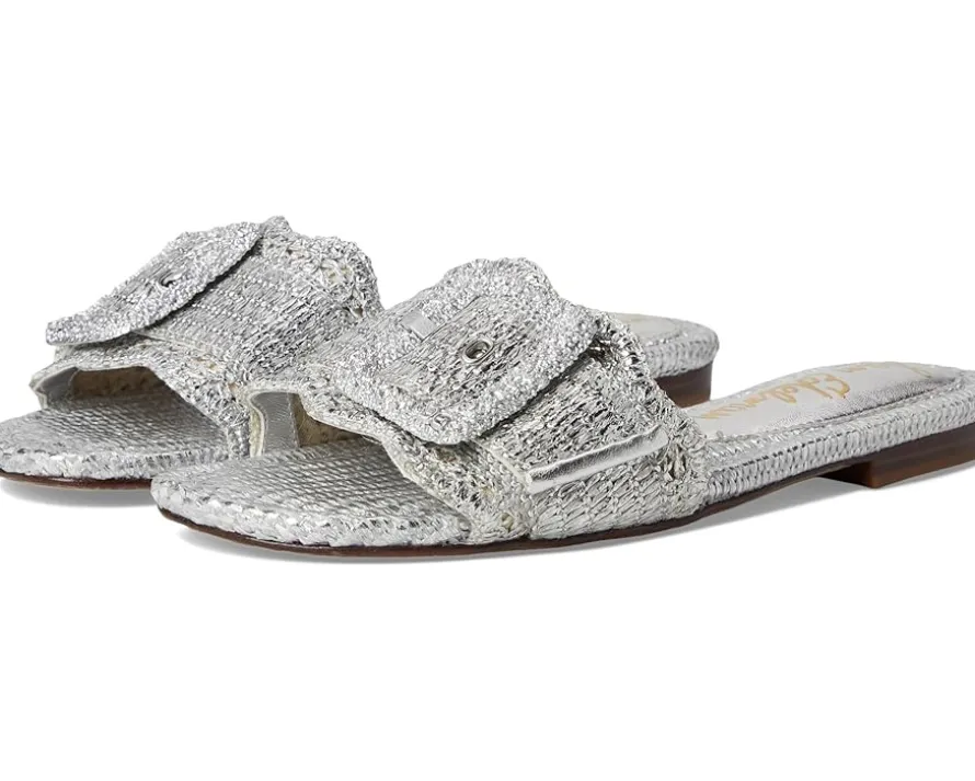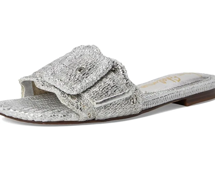 - The Sam Edelman® Bambi 6 slide sandals boast a raffia upper complemented by an oversized resin buckle. Play with proportion and pack a punch. Boasting an open, square toe silhouette, the slip-on flat features polyurethane lining and faux leather insole.
