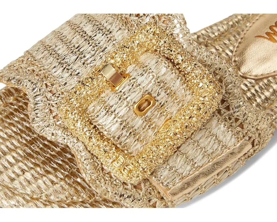 - The Sam Edelman® Bambi 6 slide sandals boast a raffia upper complemented by an oversized resin buckle. Play with proportion and pack a punch. Boasting an open, square toe silhouette, the slip-on flat features polyurethane lining and faux leather insole.