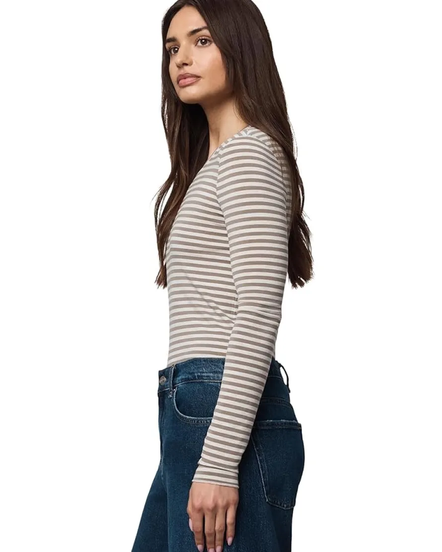 - Create a comfy and basic look by wearing the Splendid® Bamboo Long Sleeve Tee. The super-soft tee has a crew neckline, long sleeves, and a straight hemline. The stylish tee has a fitted silhouette and stitch details on the hem and cuffs.