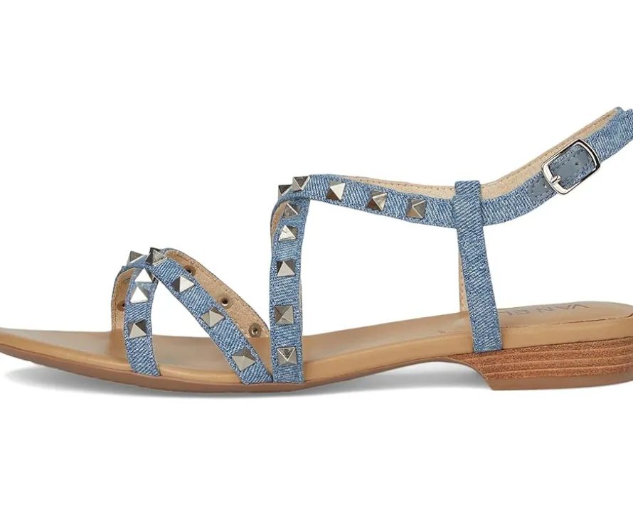 - Fashion meets comfort in the Vaneli® Basira Sandals, designed with a strappy leather upper and beautiful stud detailing. The leather lining and rubber insole improve the comfort, while the ankle strap & buckle closure ensure a secure fit. The solid block heel further elevates the look.