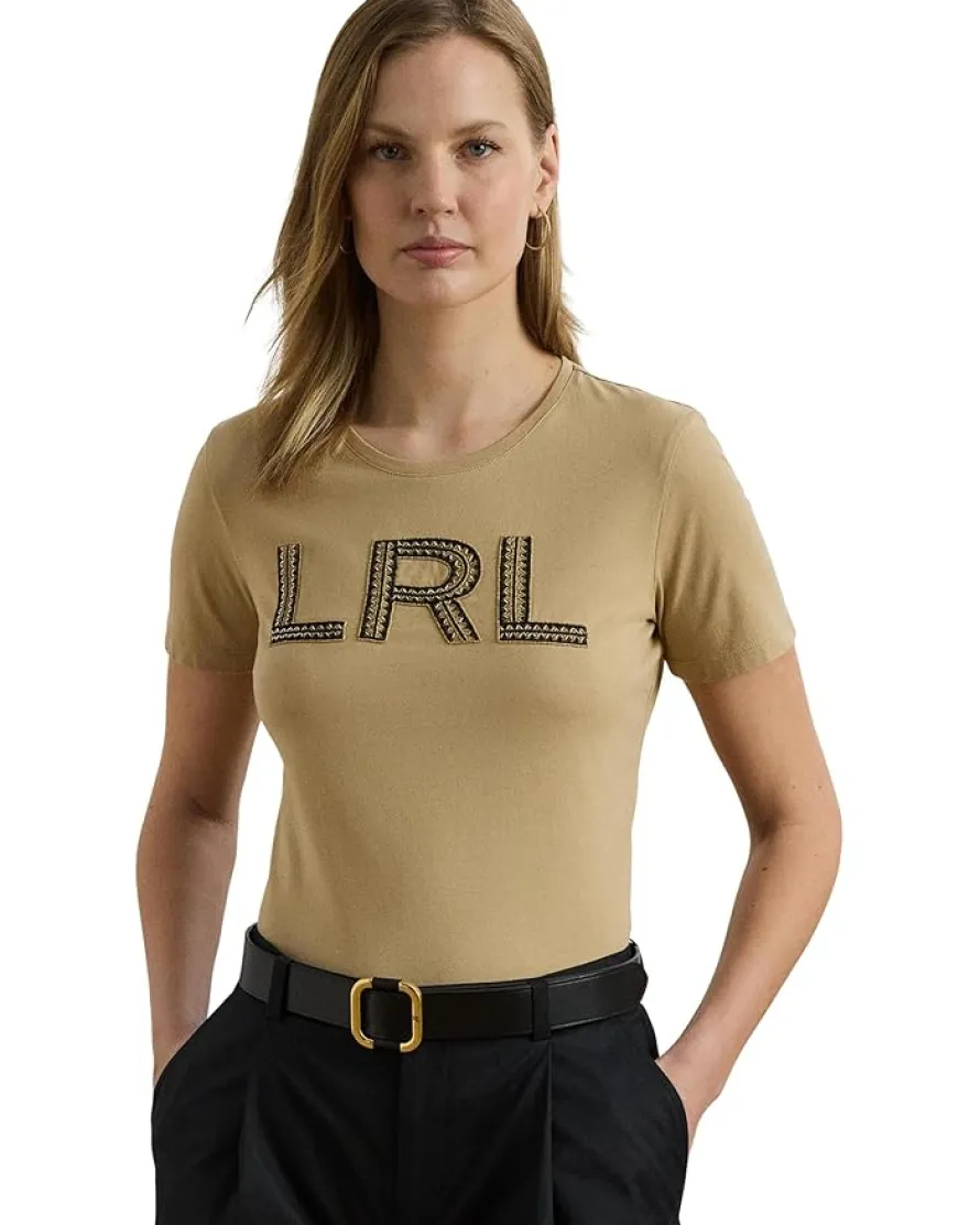 - Made with soft cotton jersey fabric, the LAUREN Ralph Lauren® Beaded-logo Cotton Jersey Tee displays Lauren’s geometric beaded logo at the chest for iconic style. It features a crew neckline, short sleeves, and offers pull-on ease.