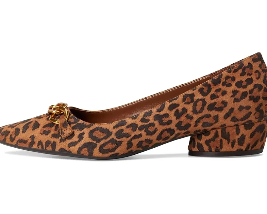 - The Naturalizer® Becca has a low block heel and slip-resistant sole that ground this pointy-toe pump outfitted with a glinting chain and contoured footbed.