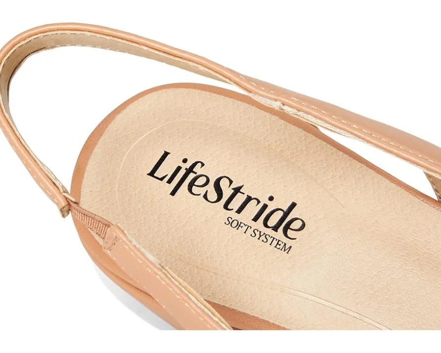 - A timeless silhouette, updated for today. This comfortable, LifeStride® Becoming low slingback heels with contrasting cap toe design will be a new favorite. Faux leather or fabric upper with contrast round cap toes and slingback strap with built-in stretch. The Soft System® Comfort package provides all-day support, flex, and cushioning.