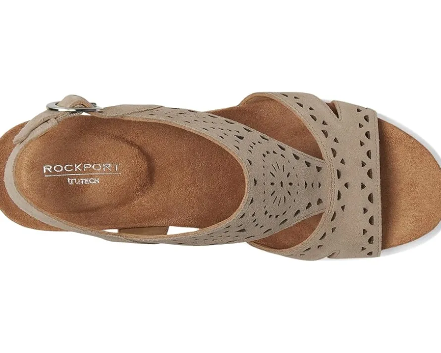 - The Rockport® Belis is a must-have for your wardrobe, blending fashion and function with ease. Designed with a luxe suede upper, an open-toe silhouette, and an adjustable buckle slingback strap, this high wedge elevates any outfit while ensuring a secure fit. The cushioned insole and built-in arch support provide exceptional comfort, while truTECH® technology absorbs shock with every step, keeping you light on your feet from day to night. A flexible synthetic rubber outsole enhances movement, making this wedge as practical as it is chic.