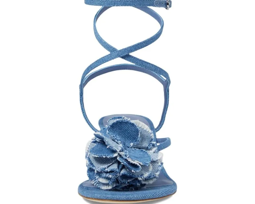 - Handsewn floral applique perfectly elevates the beauteous look of Stuart Weitzman® Belize 50 Sandal. The open toe footwear features toe-post strap for a secure hold, kitten heels, and wrap-up ties with buckle adjustable ankle strap closure.