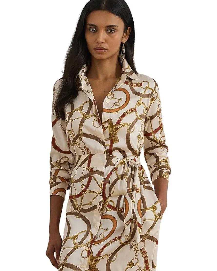 - Ideal for parties and events, the LAUREN Ralph Lauren® Belting-Print Twill Shirtdress is the perfect accessory to make your fashion statement. Crafted from silky twill fabric that offers a fluid drape and subtle sheen, this shirt dress makes a great addition to your wardrobe. The self-belt with threaded belt loops offers a snug fit. This printed dress features a front buttoned placket with brand-engraved pearl buttons for easy wear.
