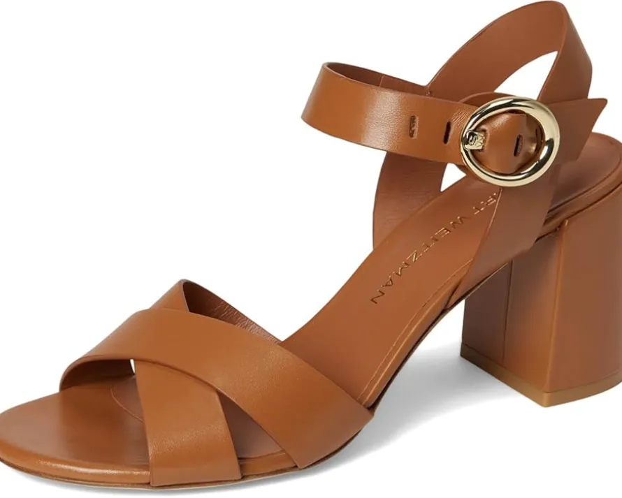 - The Stuart Weitzman® Benni Block 75 is a mid-top sandal with crisscross leather upper straps and an adjustable buckle closure. With a block heel, this sleek silhouette features an open almond toe shape.
