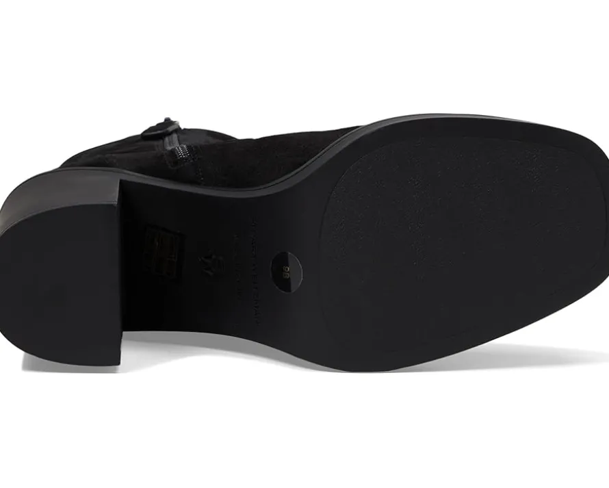 - Showcase classic simplicity with utmost ease wearing the Stuart Weitzman® Bethenny 80 Zip Bootie. The high-top footwear features leather upper with block heel and zippered side closure.